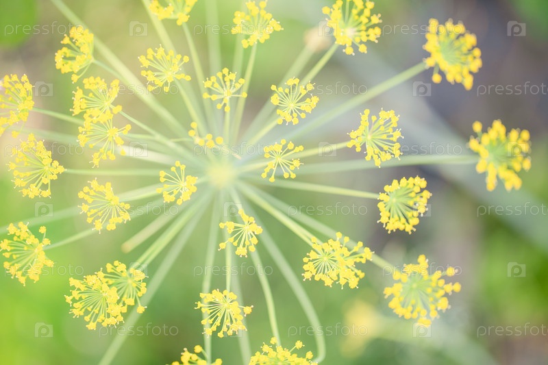 Абстракция флоры с желтыми цветами и зеленым размытым фоном
