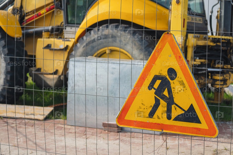 Желтая тяжелая строительная техника за забором
