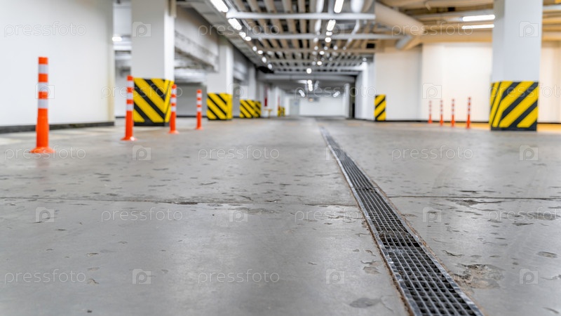 Пустая подземная автостоянка, сосредоточьтесь на размытом фоне переднего плана