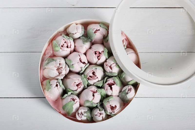 Зефирные цветы. Зефир в коробке. Домашний зефир. Коробочка с прозрачной крышкой