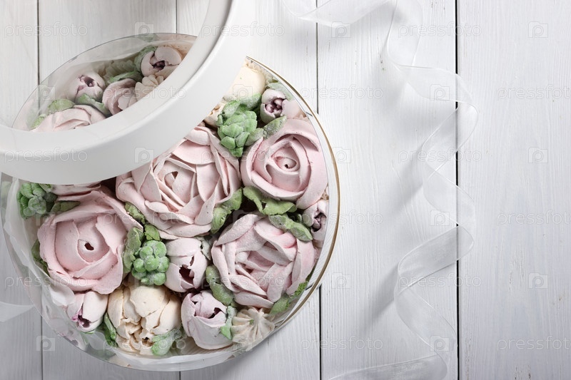 Зефирные цветы в коробке. Домашний зефир. Коробка с прозрачными стенками и крышкой