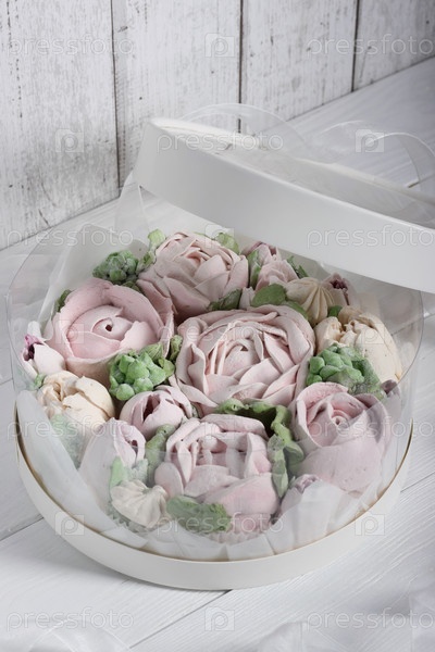 Зефирные розы в коробке. Зефирные цветы. Домашний зефир. Коробка с прозрачными стенками и крышкой
