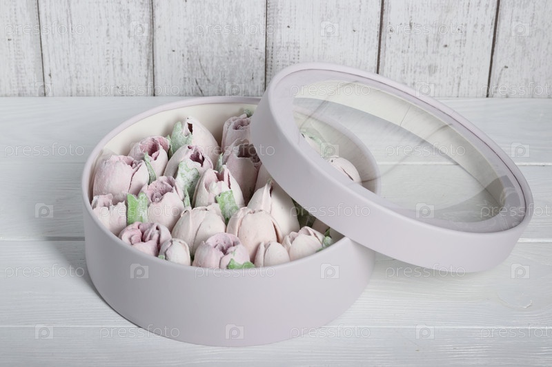 Зефир в шляпных коробках. Зефирные цветы. Домашний зефир. Белая шляпная коробка