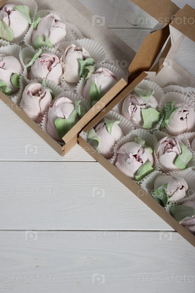 Зефир в подарочных коробках. Зефирные цветы. Домашний зефир. Коробка открыта