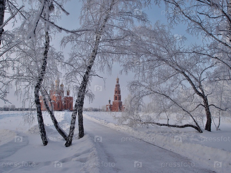 Зимний вид на собор Успения Пресвятой Богородицы на территории Ачаирского монастыря