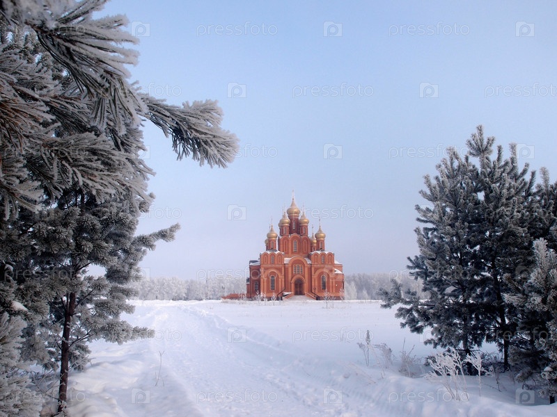 Зимний вид на собор Успения Пресвятой Богородицы на территории Ачаирского монастыря