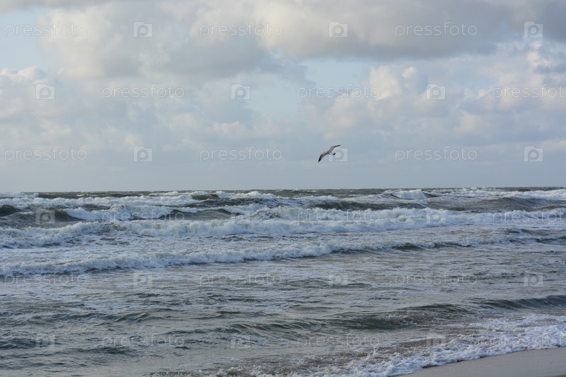 Чайка над бушующим балтийским морем