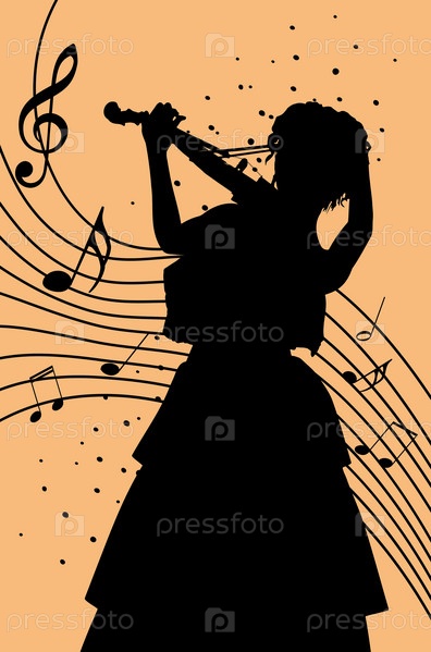 Женщина со скрипкой и нотами