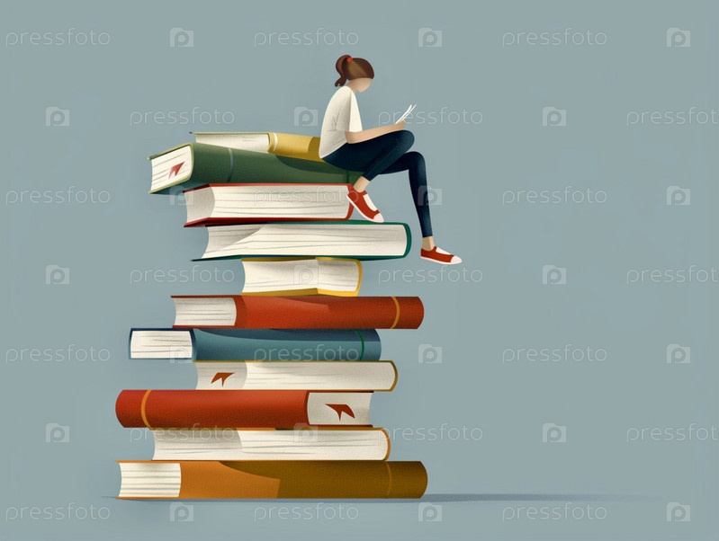 Иллюстрация с девочкой, читающей книгу ко Всемирному дню книги