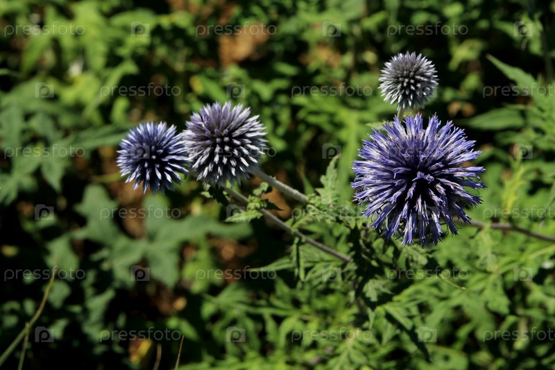 цветы мордовника шаровидного (лат. echinops sphaerocephalus) синие колючие круглые цветки в саду