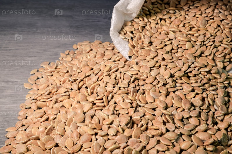 Семена тыквы высыпаются из мешка