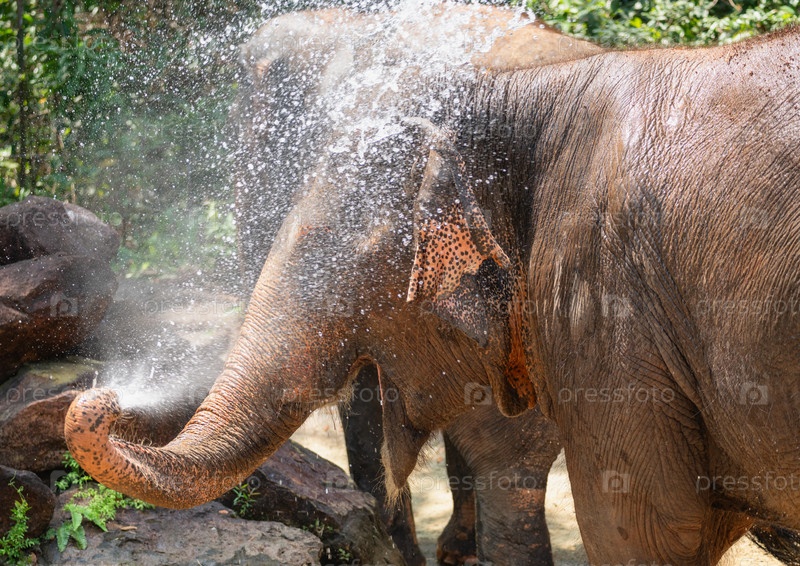 Жарким днем слона облили водой из хобота