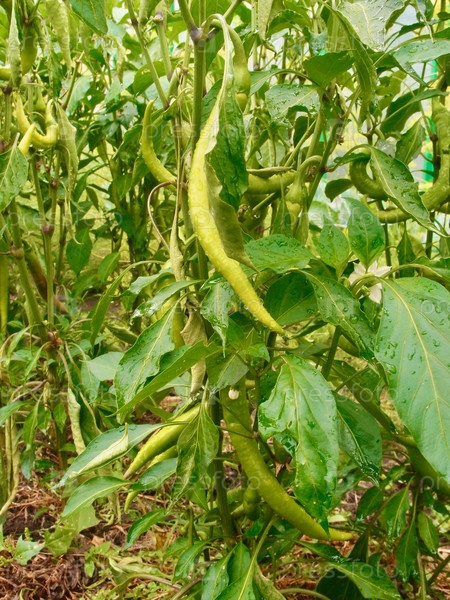 Кусты острого перца в саду