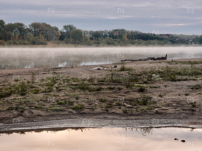 Хмурое туманное утро на реке Иртыш