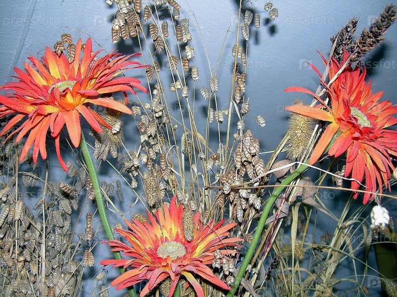 Букет со злаками и герберами