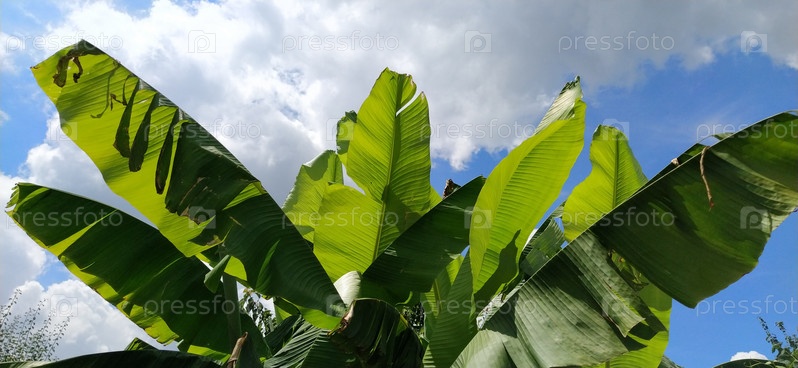 Зеленый банановый лист в природе, банановый лист