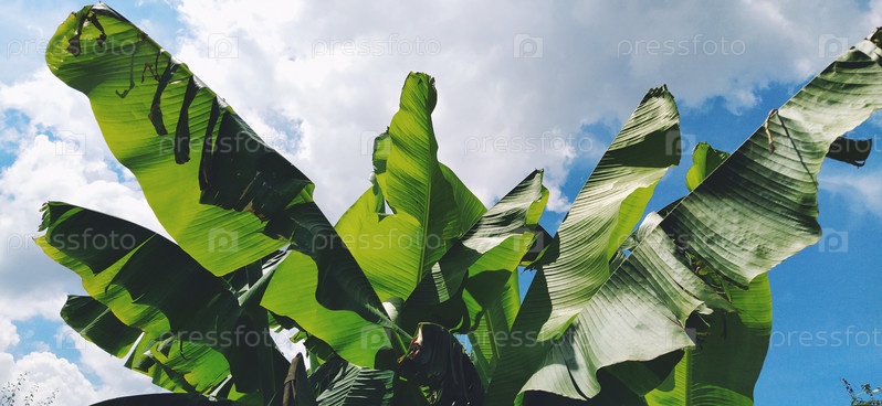 Зеленый банановый лист в природе, банановый лист