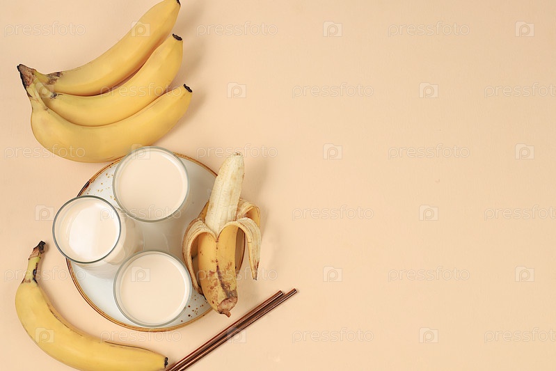 Концепция здорового питания, банановое веганское альтернативное молоко без лактозы и глютена, отсутствие аллергии, поддержание здоровой микрофлоры кишечника, диетическое питание, потеря веса,