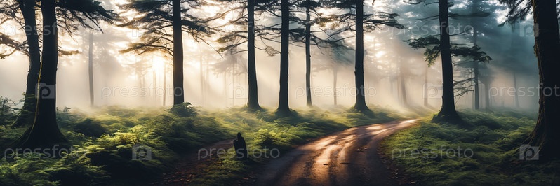 Безмятежная красота туманного леса на рассвете