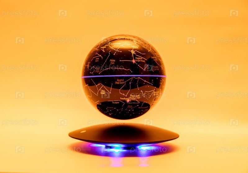 Ночник, круглый шар с разноцветной подсветкой на желтом фоне