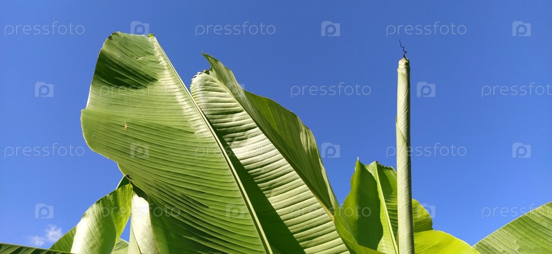 Зеленый банановый лист в природе, банановый лист