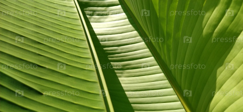 Зеленый банановый лист в природе, банановые листья