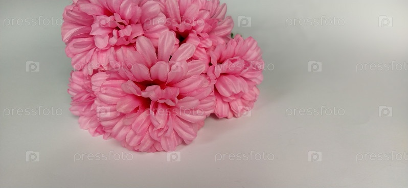 Розовые хризантемы на белом фоне. Искусственные цветы в виде букета