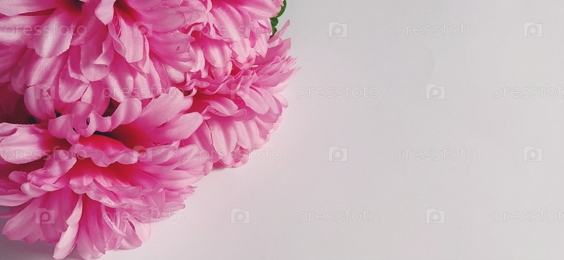Розовые хризантемы на белом фоне. Искусственные цветы в виде букета