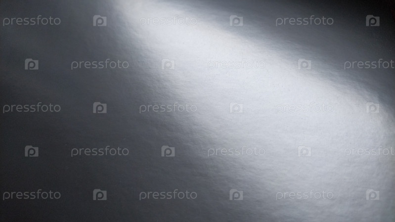 Длинная вспышка света на блестящей серой бумаге. Светлое пятно на монохромной поверхности, отражающее свет. Абстрактный монохромный фон. Раздевайте сверху слева направо