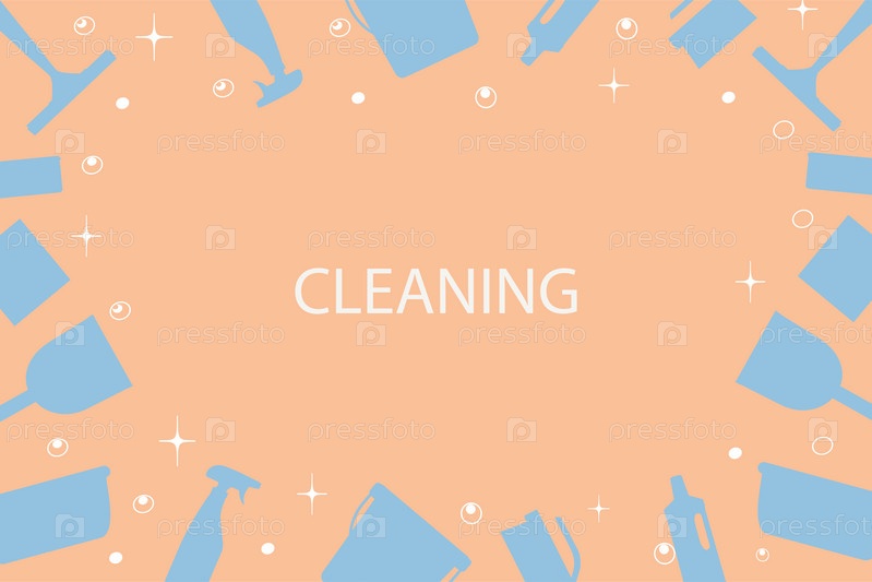 Фон чистящего оборудования. Векторная иллюстрация изолирована на розовом фоне