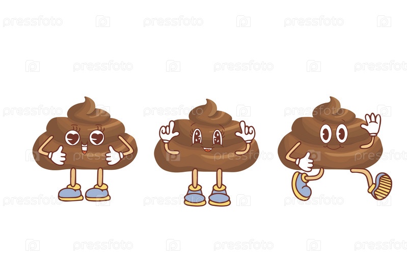 Набор смайликов из мультфильма "Какашки" милый смешной персонаж экскрементов изолирован на белом фоне. Кавайная коричневая коллекция смайлов «куча дерьма». Плоский дизайн векторных рисунков детских какашек с иллюстрацией лиц