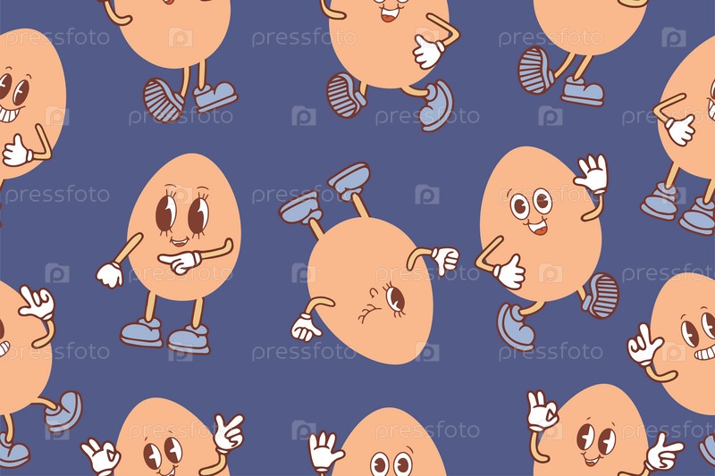 Бесшовный узор из яиц в стиле каваи. Концепция правильного питания и здорового образа жизни. Векторная иллюстрация