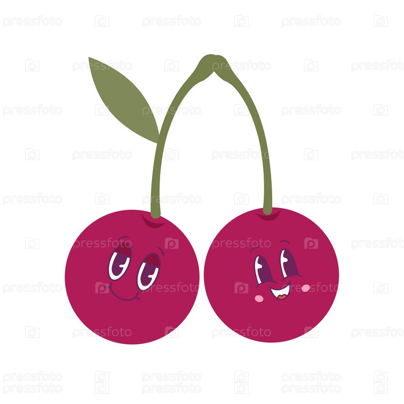 Иллюстрация вишни в стиле каваи. Пара плодов вишни. Идеально подходит для детского питания и раскрашивания детской книжки. Векторная иллюстрация