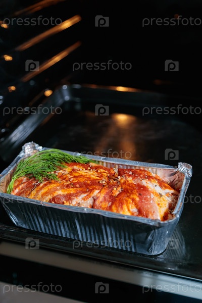 Приготовление мясного рулета в духовке, крупный план