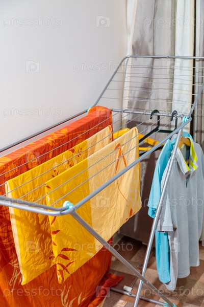 Складная сушилка для белья с чистым бельем, домашний комфорт