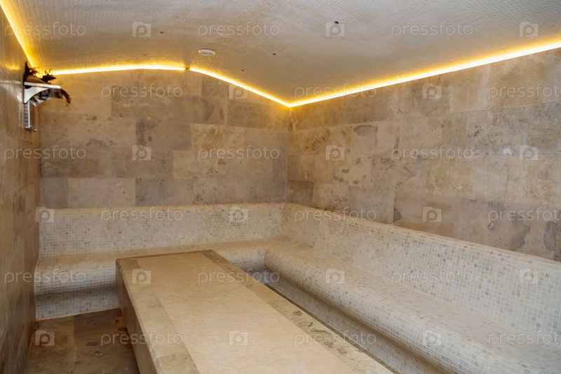Атмосфера умиротворения в уникальном хаммаме с использованием светлого камня. Расслабление, забота, энергия
