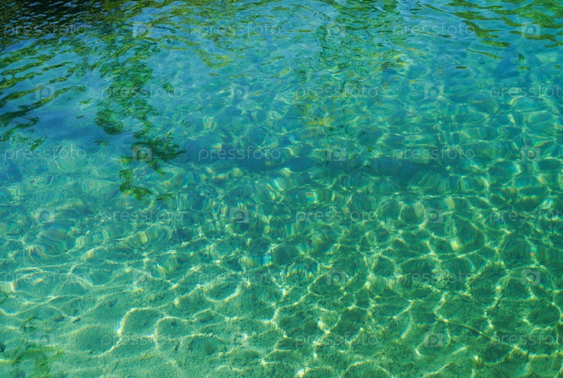 Красивая сине-зеленая вода в солнечный день в озере в Плитвицах