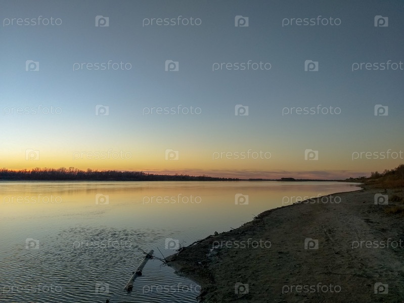 Вид на осенний берег реки Иртыш в Омской области