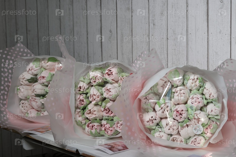 Три зефирных букета. Зефирные цветы. Зефирные тюльпаны. Домашний зефир
