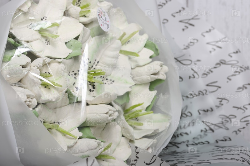 Букет белых лилий. Зефирный букет. Зефирные цветы. Домашний зефир. крупный план