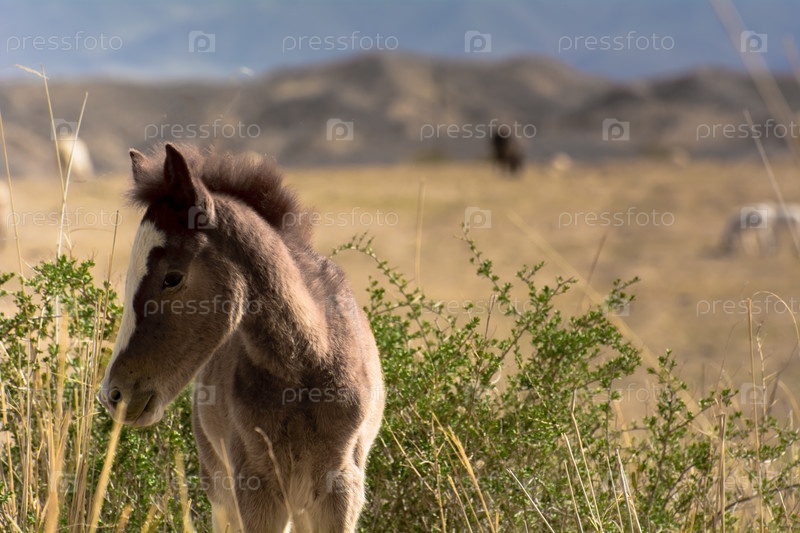 Лошадиный детеныш, жеребенок в дикой природе