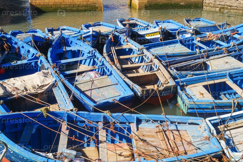 Голубые рыбацкие лодки в гавани Эс-Сувейры