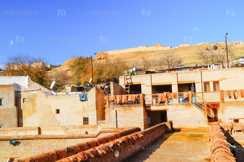 Сушка кожи на кожевенном заводе в древней медине Феса
