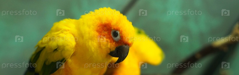 Красочный желтый попугай, Sun Conure Aratinga solstitialis, баннер