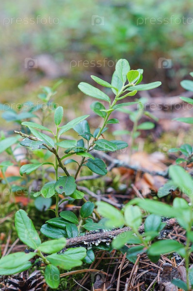 Листья брусники. Красивый фон с зелеными листьями брусники