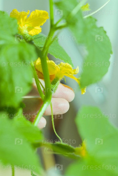 Цветущий огурец в саду. цветущий огурец