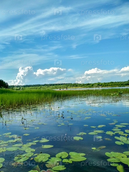 Летний пейзаж с рекой и голубым небом
