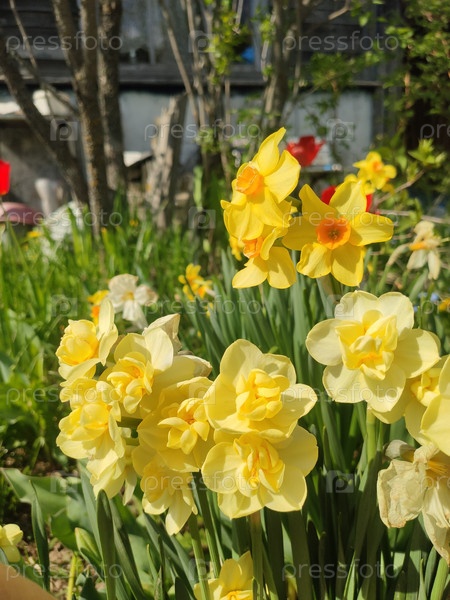 Красивые желтые цветы нарциссов в саду