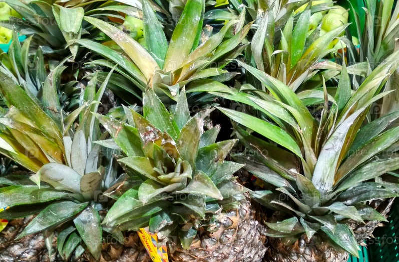 Группа зеленых хвостиков ананасовых фруктов крупным планом
