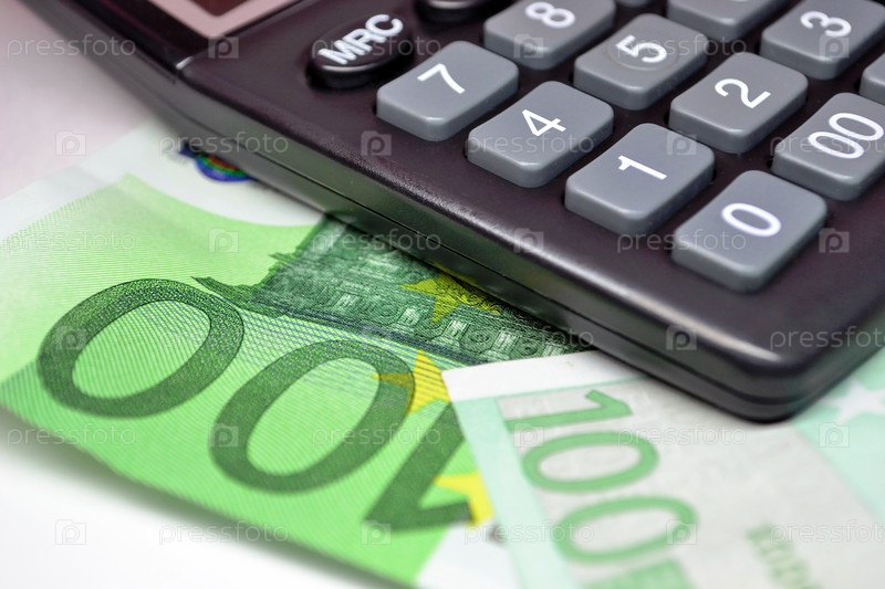 Калькулятор и банкноты евро, макро